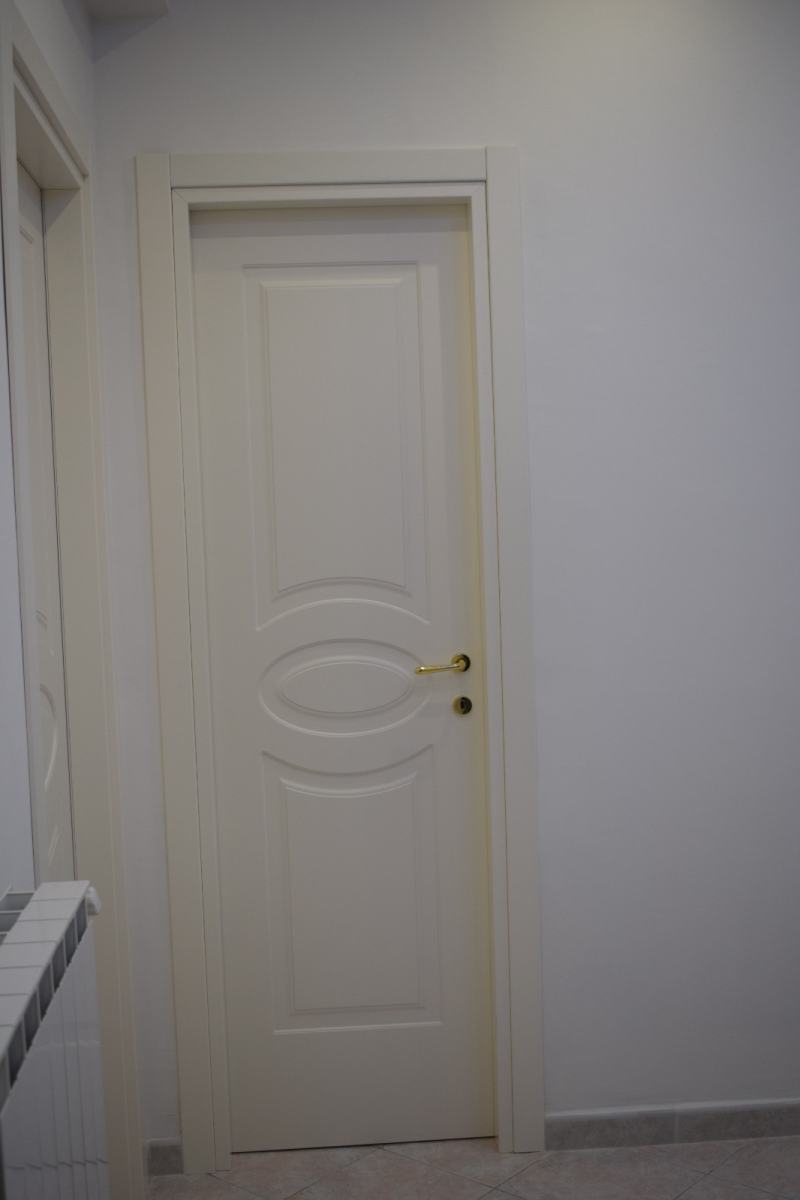 Porte à battants laminée avec un châssis et une architrave arrondis ou plats